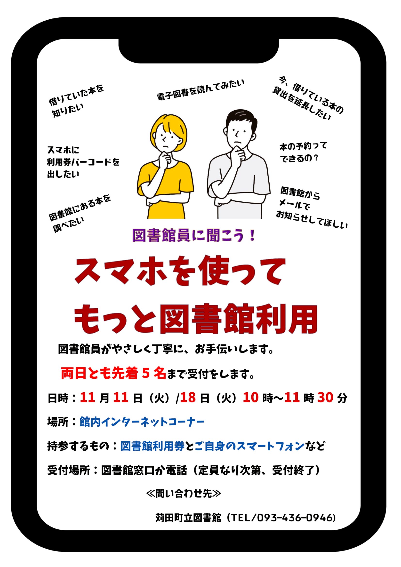 スマホを使えば、もっと楽に、簡単に図書館利用ができます。